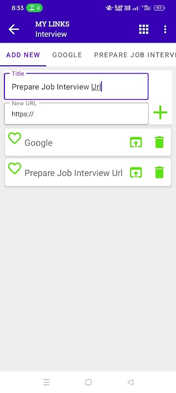 My Links ユーザーがカスタム カテゴリ名に基づいてお気に入りの Web URL を追加または削除するのに役立ちます。動的に追加された URL はスクロール可能なタブに読み込まれ (縦画面と横画面の両方をサポート)、ユーザーは外部ブラウザーで URL を開くことができます。