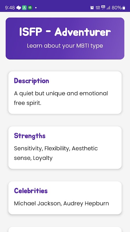 • History tracking to see how your MBTI has changed
