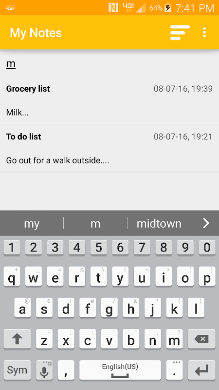My Notes is a simple and easy application. It helps to create, edit, and delete a simple text based note. It is always at your hand, you just have to write down what you want to do or what you don't want to forget.