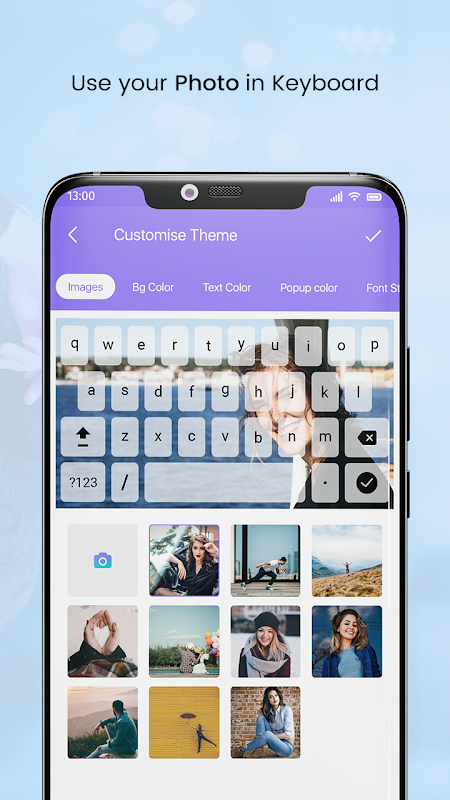 この My Photo Keyboard 2024 アプリでは、素敵なハート、美しい自然、ボケ味、かわいい動物、その他の写真の背景を入手できます。希望するものを選択し、キーボードの背景に設定できます。