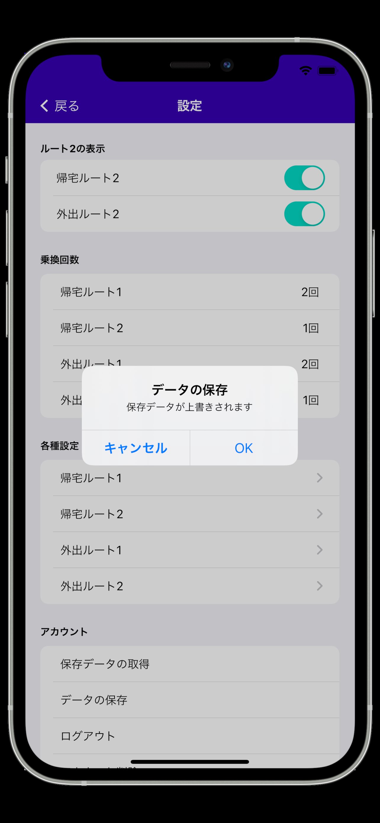 ・帰宅ルートと外出ルートをそれぞれ登録でき、切替できます