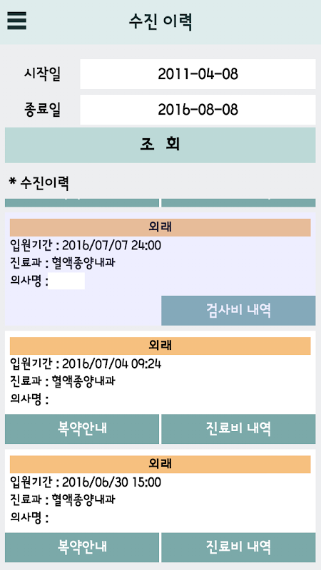 - 진료비 조회