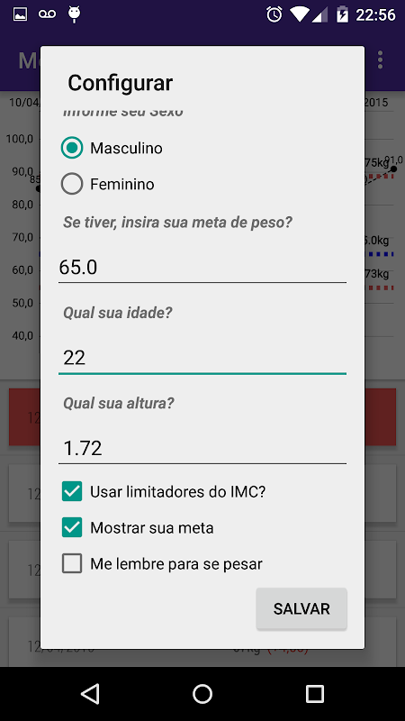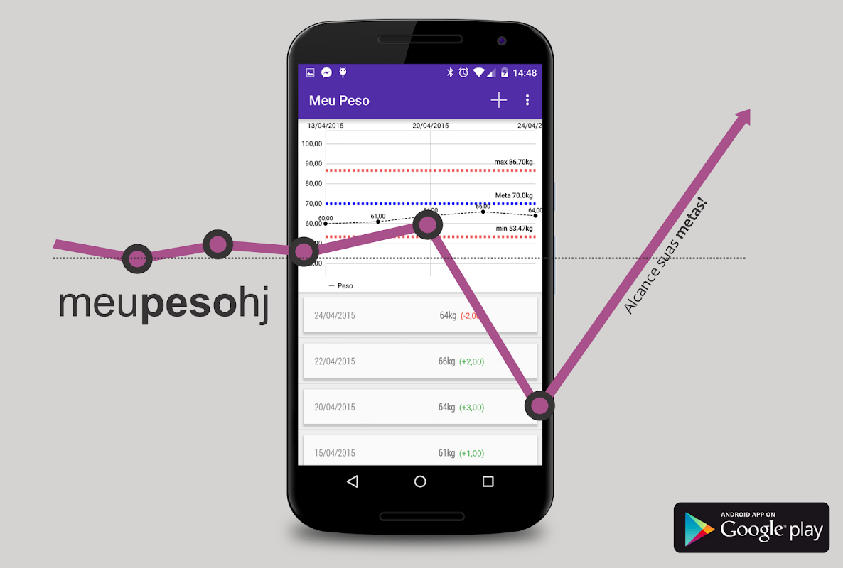 Com o aplicativo é possivel acompanhar seu peso, definir sua meta e ainda te ajudar a manter o peso ideal.
