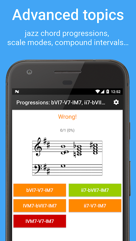 MyEarTrainingを使用すると、外出先でいつでもどこでも耳のトレーニングを練習できるため、楽器を組み立てる手間が省けます。バス停で待っている間、旅行中、あるいはコーヒーデスクでさえ、あなたは実際にあなたの耳を訓練することができます。