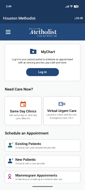 MyMethodistアプリを使えば、いつでもどこでもヒューストン・メソジストの質の高いケアを受けることができます。ご自身の健康管理をしっかり行い、ニーズに合わせてパーソナライズされたケアをご利用ください。即日ケアの検索、ケアチームへのメッセージ送信、予約管理、新しい医師の検索など、すべてタップひとつで行えます。