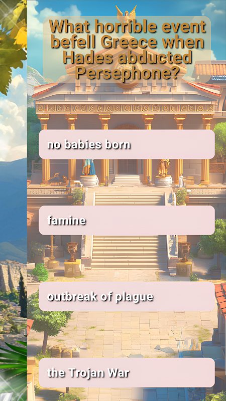 Mythology Challenge アプリへようこそ。古代ギリシャの驚異が生き生きと蘇ります!強力な神々、英雄的な伝説、神話上の生き物でいっぱいの世界を旅しましょう。楽しく魅力的なクイズで、ゼウス、ヘラクレス、アテナなどの有名な人物についての知識をテストできます。各質問はエキサイティングで教育的なものになるように設計されており、すべての年齢の好奇心旺盛な心に最適です。