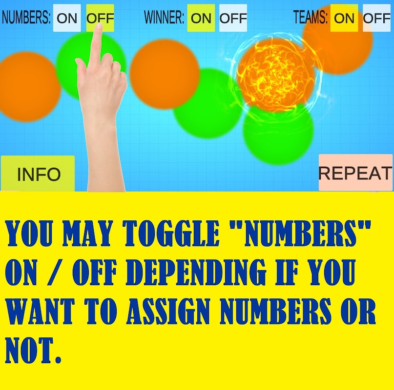 *「番号」モードをオンに切り替えて、タップルーレットをプレイする各人に番号を割り当てます