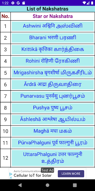 ナクシャトラの#Favourableと不利な形質が詳細に説明されています。