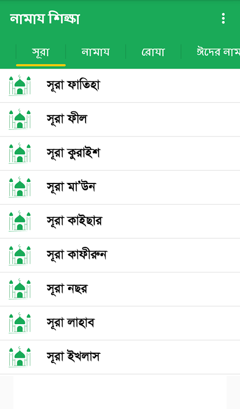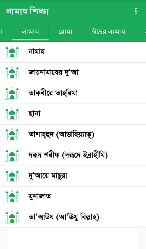 নামাজ শিক্ষা অ্যাপ্লিকেশনটিতে যা যা আছে তা নিচে দেওয়া হলো-
