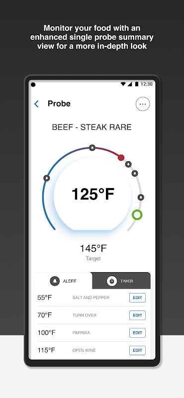 -アプリを使用すると、ユーザーは調理サイクル中にカスタム温度アラートを設定できます。