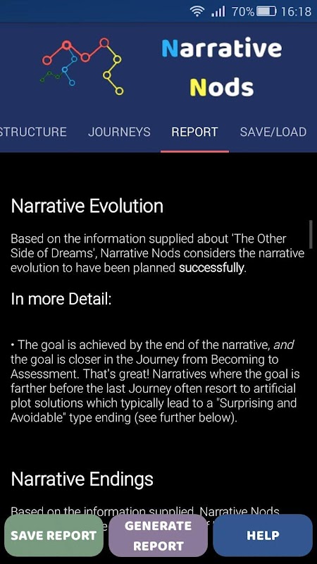 Taking into consideration a vast number of variables from information the user provides about characters, structure, and the overall story goal, it creates narrative possibilities ("nods") that assist the author in selecting dynamic, sense-making plots.