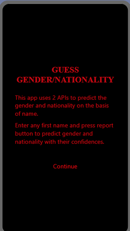 This APP created for fun purposes only. This APP will tell know may be from which country that person is from.