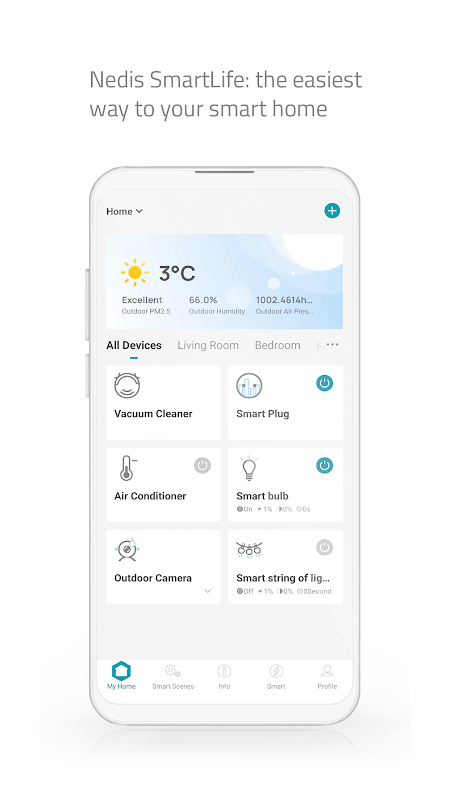 • Nedis SmartLife アプリは、Tuya を搭載したスマート ホーム デバイスとシームレスに連携します。