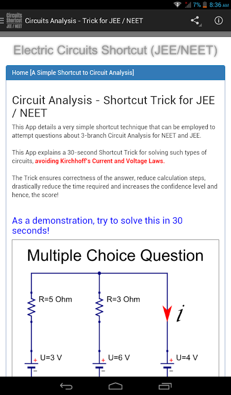 This app details the shortcut trick that can be employed to attempt questions about Circuit Analysis for NEET and JEE.