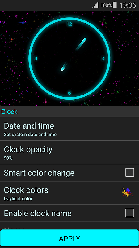 Our Clock Widget App offers you the possibility to choose between three sizes. Small (1x1) - a cute small clock that is the size of an icon, Medium (2x2) - the perfect size for those who want to make their phone the most beautiful and unique, Large (3x3) - the best size for you if you want everyone to notice your phone, Huge (4x4) - the biggest clock ever seen and it is just for your phone.