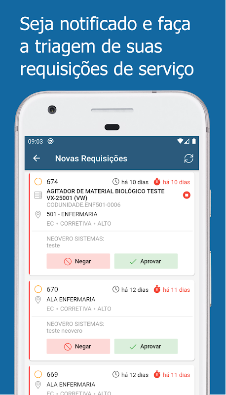 - O supervisor pode alterar a oficina, equipamento ou setor antes de aprovar ou negar uma requisição.