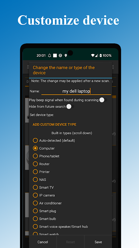 Note: Starting with Android 13 and targeting Android 13 (which is mandatory by Google Play rules), only IP-based device detection is available which is less reliable than the previous MAC-based device detection.