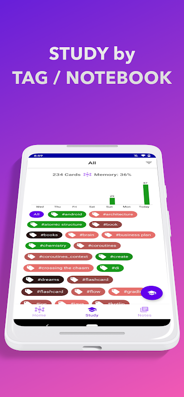 NeuraCache は、メモのカードごとにハンズフリーで、間隔を空けた繰り返しを開始します。