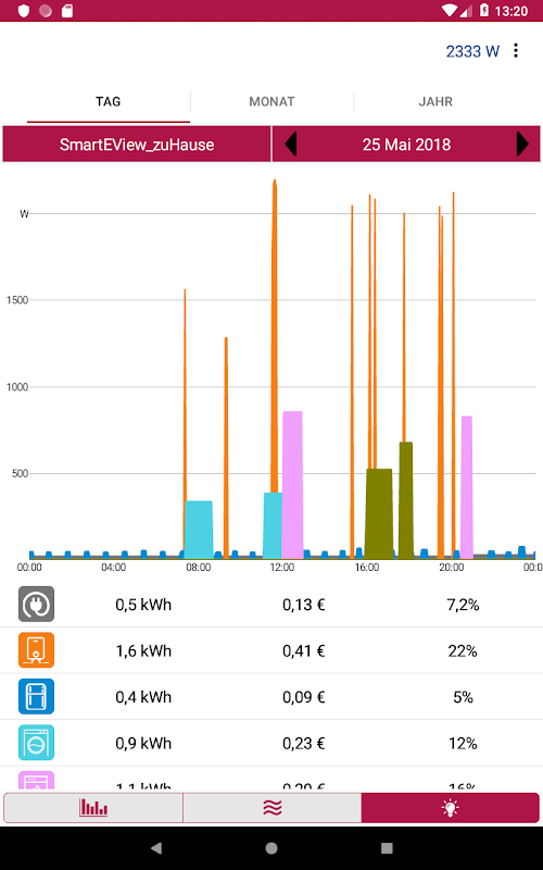 NEW SmartEViewアプリを使えば、あなたの電力消費に関連するすべての情報にどこからでもアクセスすることができます。リアルタイム値(スマートメーターによって2秒更新)に加えて、あなたは、日次、月次および年次消費と生産データの概要を取得します。