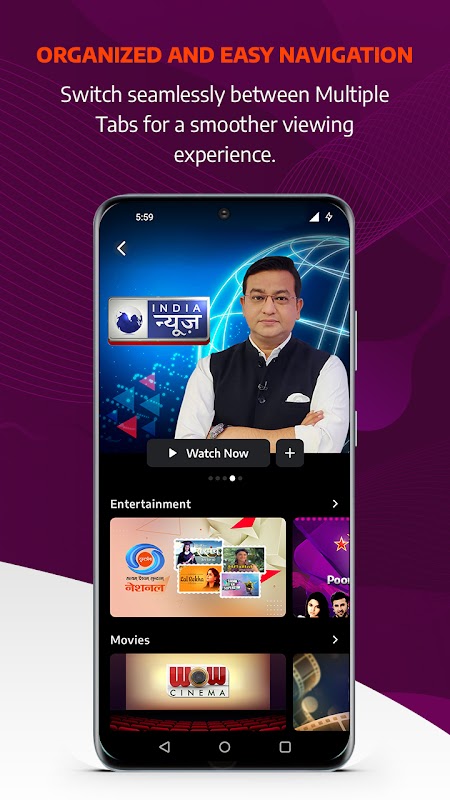nexGTv は、ヒンディー語、英語、アッサム語、ベンガル語、ボージプリ語、カンナダ語、マラヤーラム語、マラーティー語、オーディア語、パンジャブ語、タミル語、テルグ語などのさまざまな地域言語に加えて、ニュース、エンターテイメント、信仰、音楽、映画チャンネルの多様なコレクションを 1 つのライブ TV アプリにまとめて提供します。