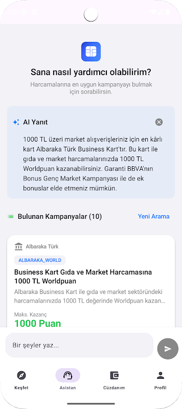 Recommends the most advantageous campaigns based on your shopping habits and performs card-based filtering.