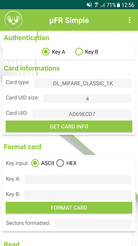 µFR NFC Reader - MIFARE example "Simple" 1.0
