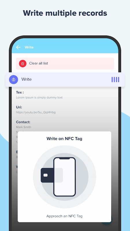 ✔️ NFCタグにテキスト、電話番号、Wi-Fiの詳細、メール、リンクなどを書き込む