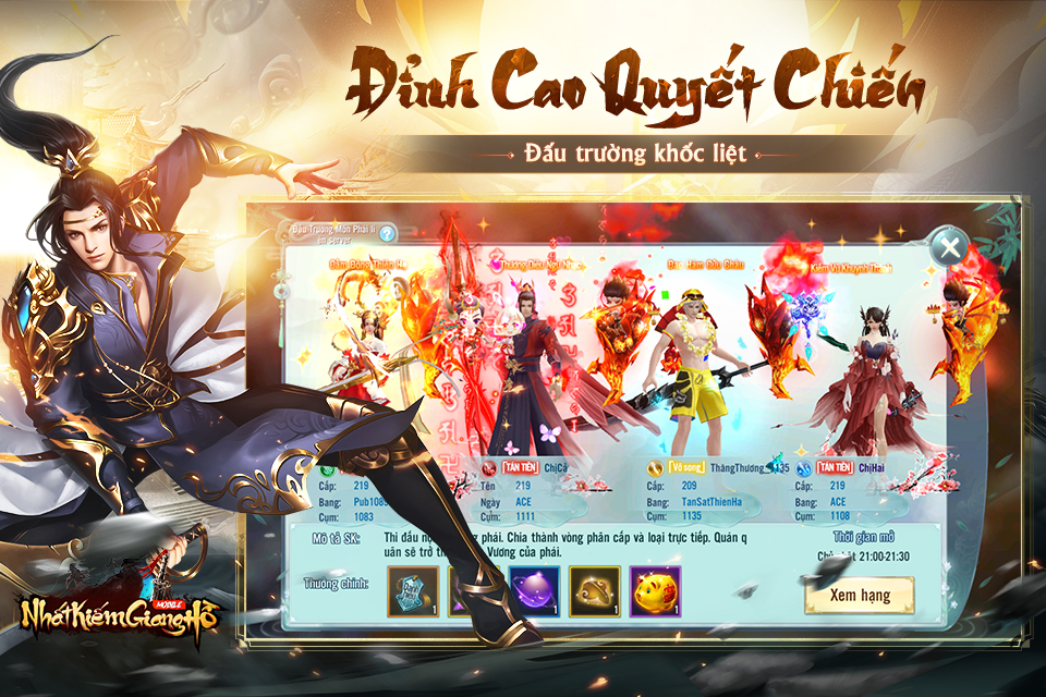 Nhat Kiem Giang Hoでのみ利用可能です。このゲームに参加すると、主人公は宗派に入団し、格闘技の秘密を探るだけでなく、宗派内の多くの英雄たちと宗主の座を競い合うことができます。