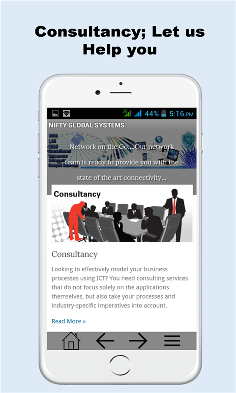 Nifty Global Systems (NGS) is a highly experienced Information Technology (IT) Consultancy Company in Software Development, Hardware, Networking, Web Site Development, Multimedia and General IT related services. Our consulting group offers valuable advice on online business strategy and other benefits in the use of information technology. We focus on superiority and provide custom solutions designed to help clients maximize their performance and reach key business goals. Using information technology you can transform your business, and become more effective, reduce costs and maintain greater control over their operations.