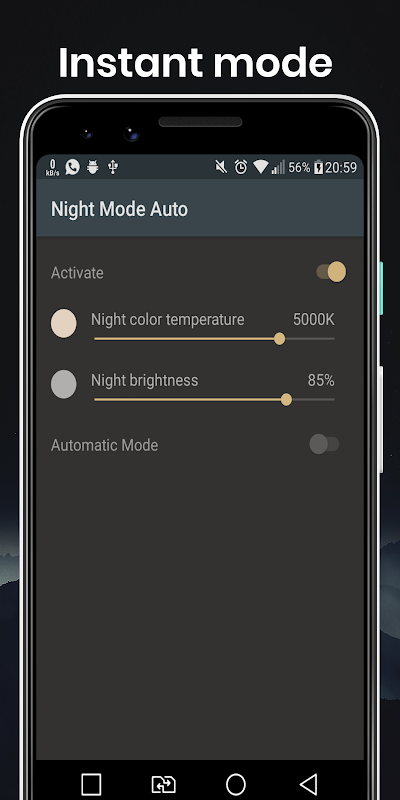 あなたの目は、彼らがスマートフォンの青い光のために緊張しています。夜間モードに行こう。それは自動的です、あなたは再び気にする必要はありません。素晴らしいよ!なぜあなたの目を健康に保ち、あなたの眠りを傷つけないようにしましょう。