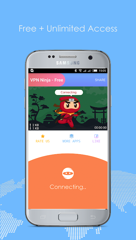 Ninja VPN , 100% free, totally unlimited VPN, secured and easy to use. It is a super fast and the best unlimited free VPN proxy for you. It is the best unlimited VPN to unblock and bypass blocked apps, secure your device, protect your online activities.