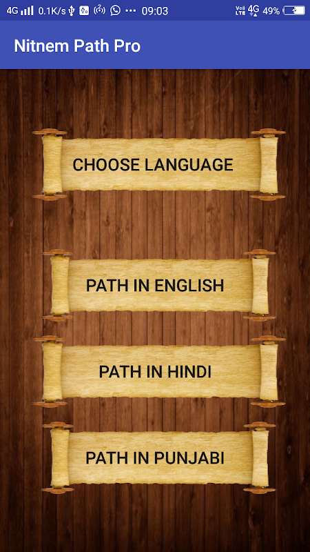 ランゲージオプション:「Nitnem Hindi」、「Nitnem Punjabi」(Gurmukhi)、Nitnem Gutka English