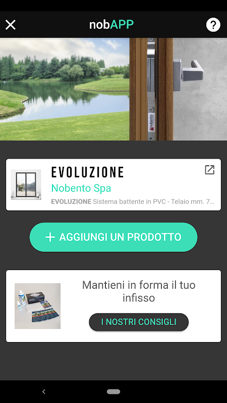 Per noi di Nobento ogni finestra è unica. Ecco perché abbiamo sviluppato un’applicazione che, grazie alla tecnologia QR code integrata, ti permette di accedere con un click a tutte le informazioni tecniche del prodotto che hai acquistato, fornendoti consigli, suggerimenti e la possibilità di un’assistenza Facile e Veloce da parte del tuo rivenditore di fiducia. Dopo aver installato NobApp ti basta lanciare l’applicazione, autorizzare la prima volta l’accesso alla fotocamera e poi inquadrare il QR code. Il gioco è fatto.
