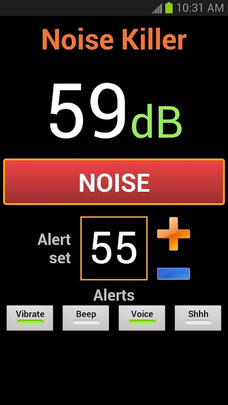Stop your surrounding noise and side talks. Ideal for use in libraries, clinics, offices or wherever you want noisy people to be silent. Choose between several alert types including: text alert, vibration, beep, "Quiet Please" voice and the "Shhh" sound.