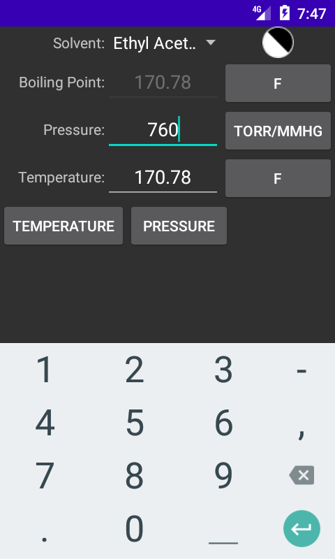 2)3つのフィールド(沸点、圧力、温度)のうち2つを入力します。