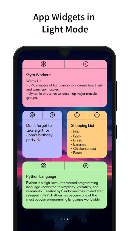 • Android アプリ ウィジェット: ホーム画面からメモに直接アクセスして、すぐに参照できます。