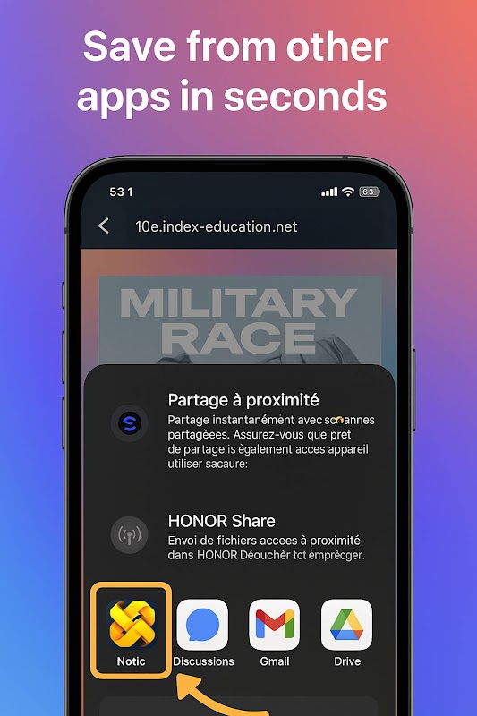 🗂️ 何でも保存: Web ページ、ビデオ、さらには自分のメモを携帯電話から直接キャプチャします。
