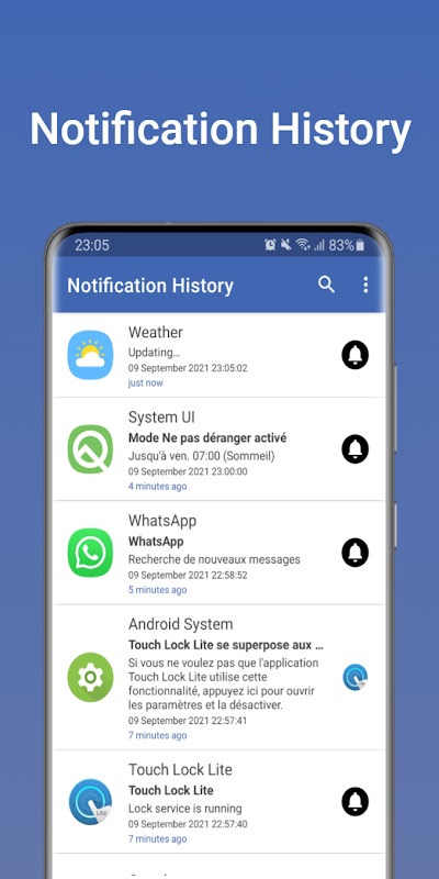 You can easily manage, sort and view all past notifications you received after installing Notification History application