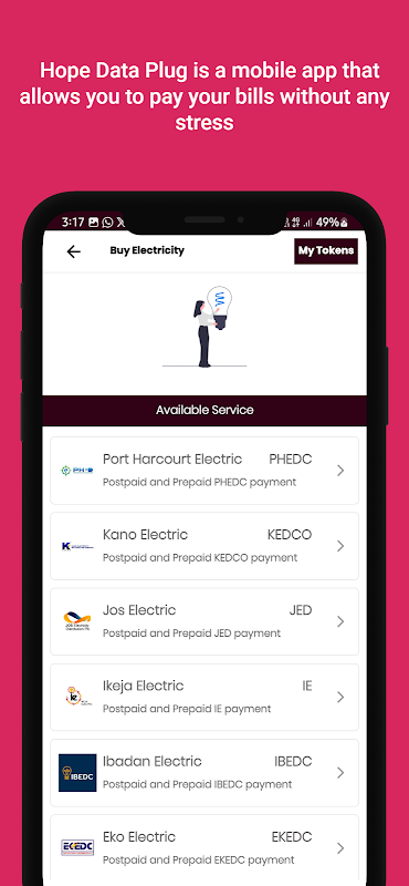 Hope Data Plug は、ストレスなく請求書を支払うことができるモバイル アプリです。格安のデータ、通信時間、データ サブスクリプション、ケーブル TV サブスクリプション、電気、格安 MTN SME データ プラン、教育用 Epin をより安い料金で購入できます。