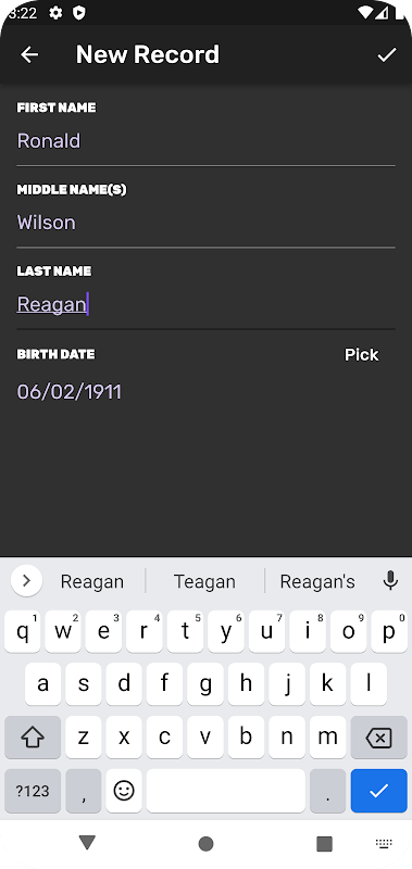 関心のある人物の数秘術パラメーターを決定するには、その人物のエントリを作成します (画面の右下隅にあるボタンをクリックした後)。その人の名、ミドルネーム、姓 (または少なくとも名) と生年月日を入力します。新しいエントリがメイン画面に表示されたら、それをタッチすると、この人物の主要な数値パラメータがすべて表示されます。数秘術のコアについては入門コースで詳しく説明しますが、他のすべてのパラメーターについては今後のコースで説明します。