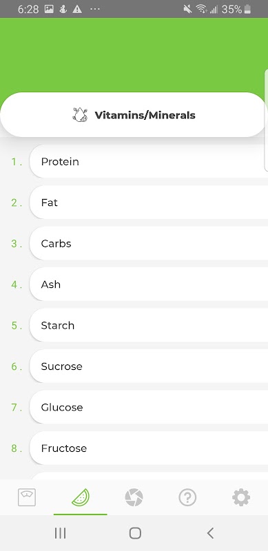 各食品/飲料は、次の一連の栄養素に分類されます。