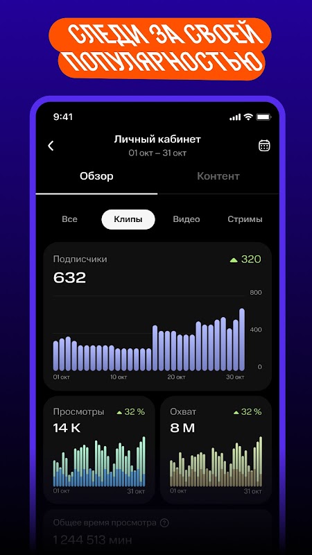 統計を確認してください。視聴者がどのような動画やストリームを好むかがわかります。ビューと報道に基づいて統計を提供します。