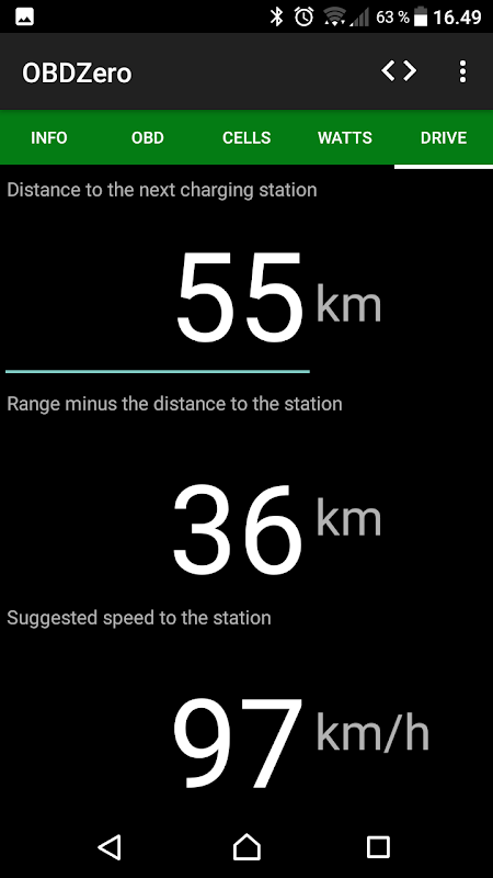 • DRIVEは次の充電ステーションまでの距離、残りの走行距離(つまり休止距離)とステーションまでの距離の差を更新し、ステーションまでの速度を提案します。