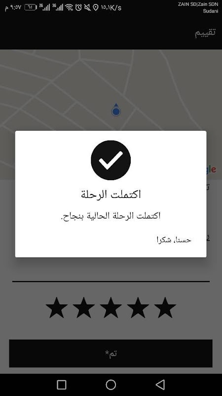 At the end of the trip, the application displays the cost of the trip with a request for a captain's assessment.