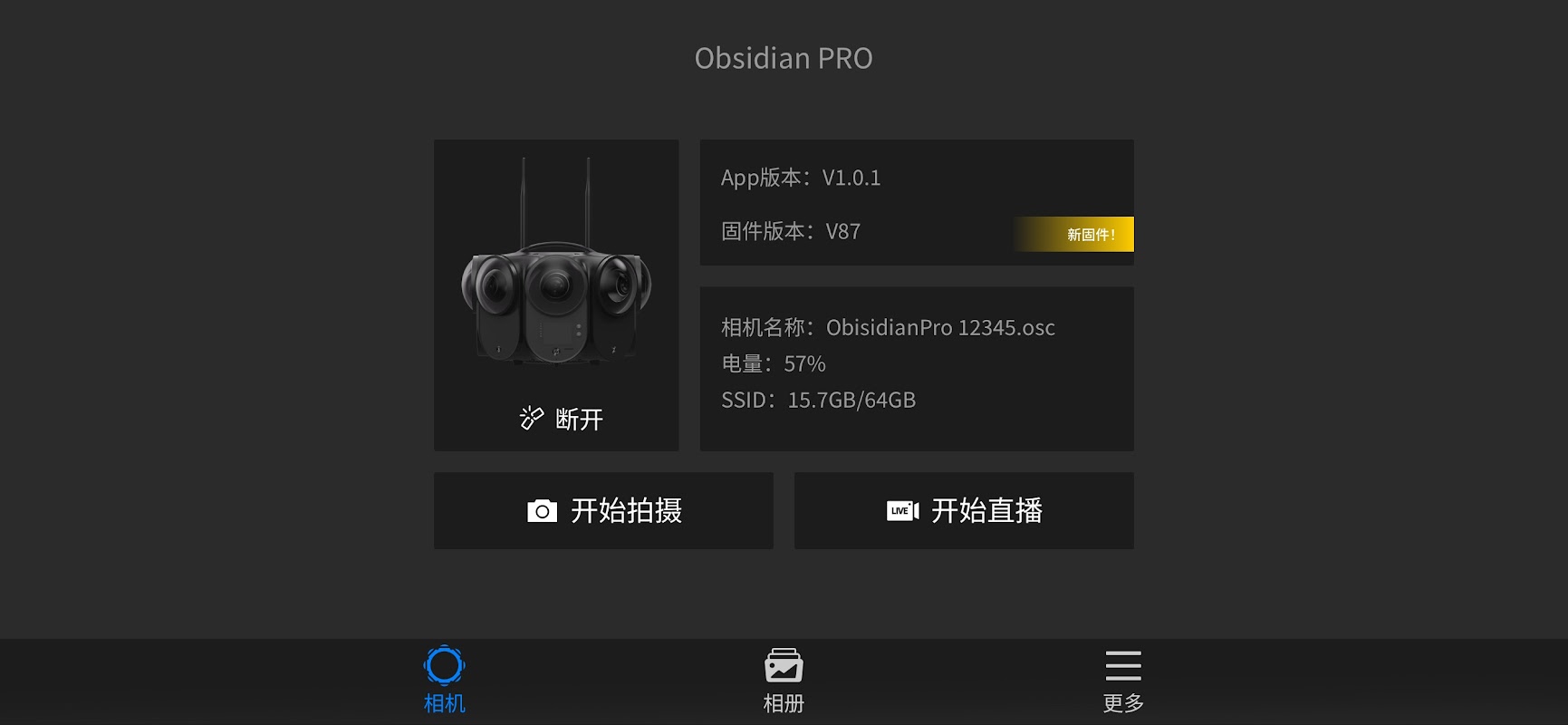 Using Obsidian Pro app, you can connect to and control your 12K 3D VR Camera, Kandao Obsidian Pro for efficient creation through WiFi. It supports real-time parameter adjustment, preview, playback, and firmware upgrade.