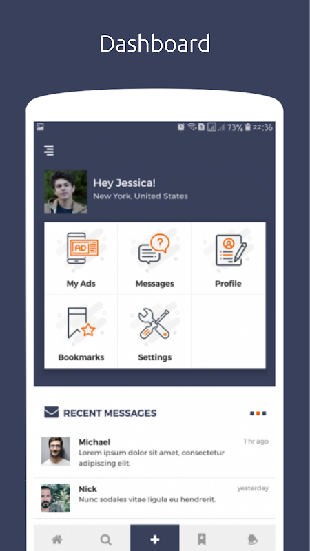 oClassify React Native Classified mobile application UI theme, compatible for both IOS and Android, super flexible and fully responsive React Native design is a complete platform for buying and selling . This UI theme is highly optimised and modernised, with our UI theme you can manage your products by posting Ads and attracts wide range of consumers and provide variety of filter and search options to browse with.