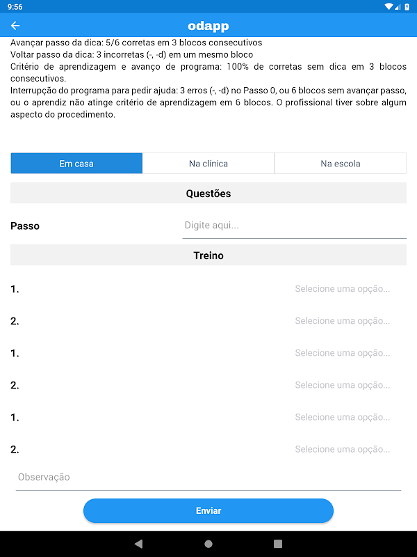 odapp プラットフォームは、自閉症やその他の発達障害を持つ子供たちの世話をする家族、セラピスト、教育者、診療所、学校、医療提供者などによって使用されています。誰もがケアラインのパーソナライズされた共同計画を通じて参加し、ABA(応用行動分析)手法に基づいた日々の進化とデータ収集を記録し、プラットフォームによって自動的に生成された指標、グラフ、結果にアクセスします。