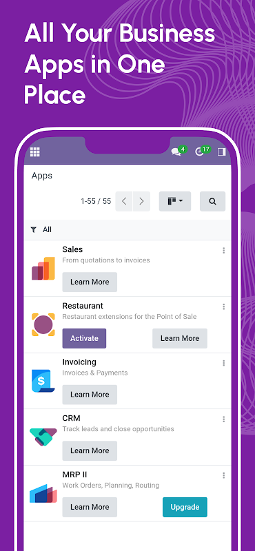 ユーザーがモバイルやタブレットから直接 Odoo を使用できるアプリ