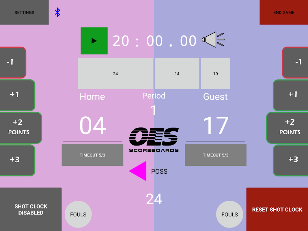 With the OES Score Controller application you can control your OES Scoreboards product using a bluetooth connection.