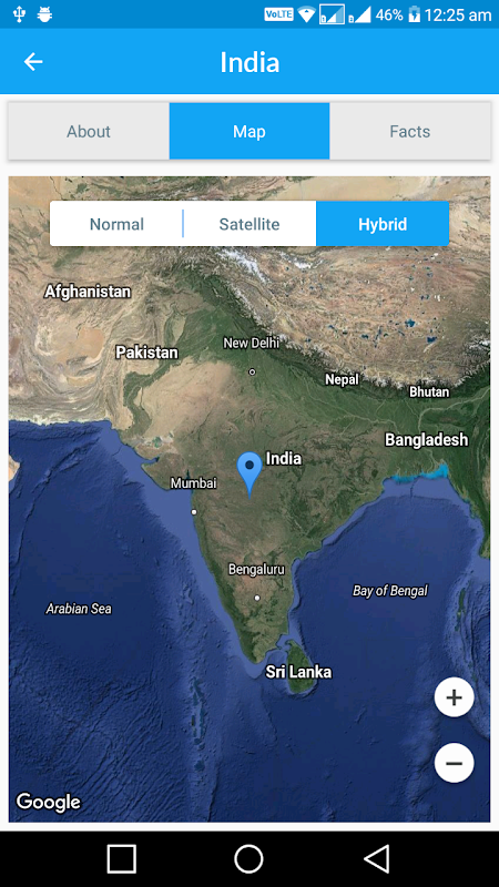 このグローバルマップには、政治的な境界を持つすべての国の名前が表示されます。国をクリックすると、アプリはその特定の国に関連する情報を表示します。各国の通常の衛星写真を見ることができます。また、首都と旗について学びます。
